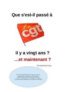 Le document ci-joint " Que s'est-il passé dans la CGT il y a 20 ans?" fait le point sur des décisions qui ont modifié en profondeur les orientations de la CGT à partir du début des années 90.